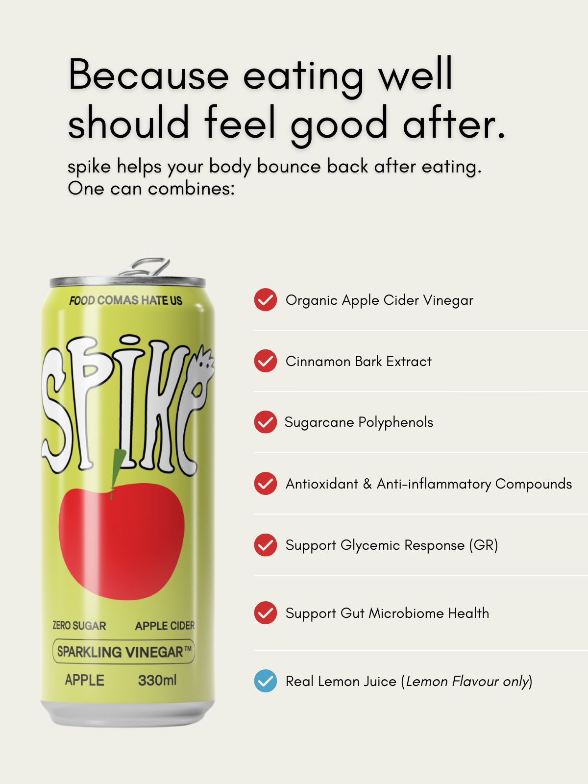 You’ve earned the wind-down, but don’t let a food coma knock you out of routine. Swap the soft drink for spike: bold, refreshing, and made to help you reset without losing momentum. Rest smart with a hit of vinegar & put your feet up with a *spike* in confidence toward tomorrow.